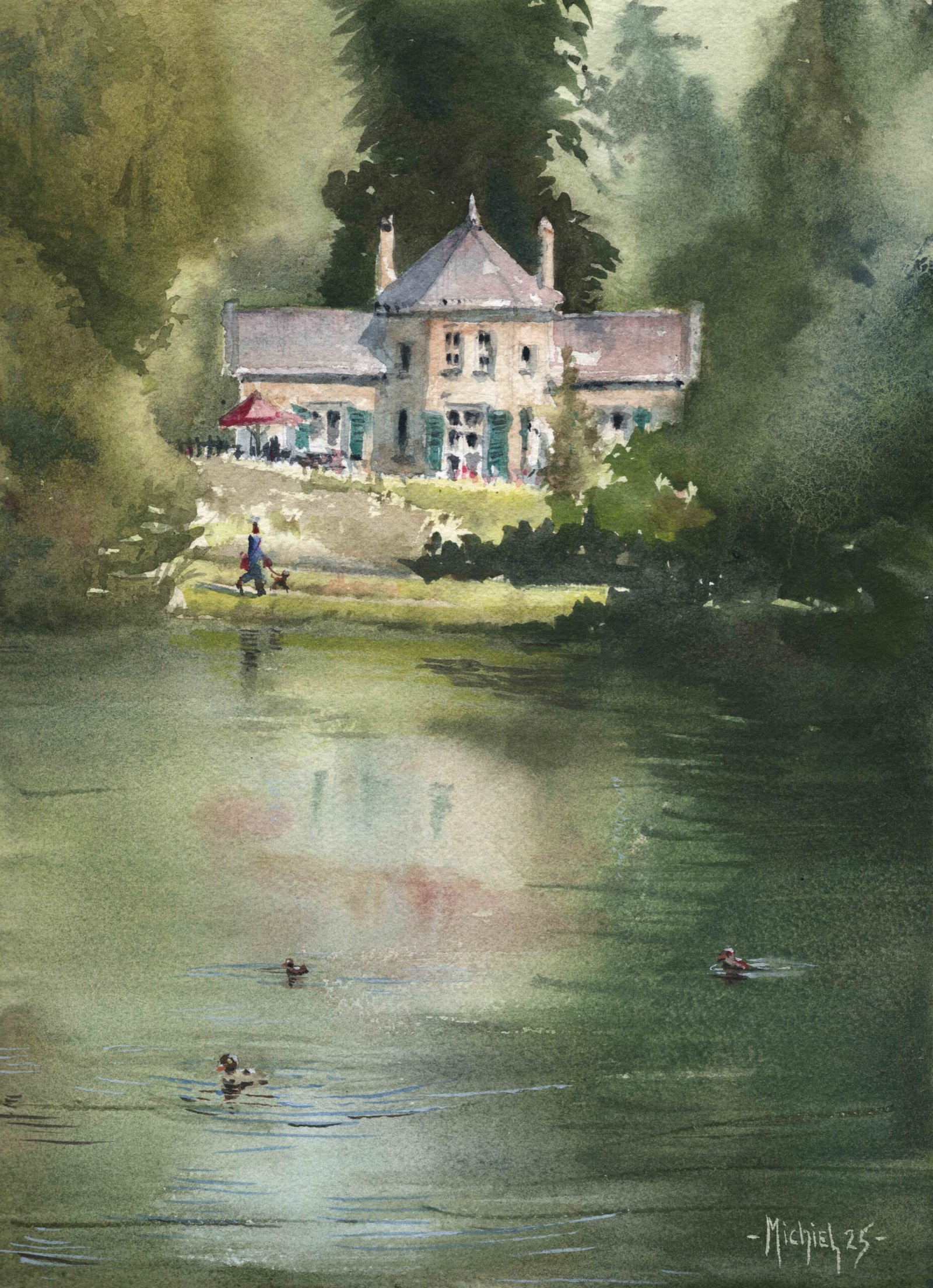 Die ochtend in Sonsbeekpark voelde alles zacht en ongedwongen. Het Gouverneurshuisje lag stil in het licht, half verscholen tussen het groen, terwijl de watervogels rimpels trokken over het gladde water. Af en toe stopte een hardloper even naast me om te kijken — kleine momenten die de rust alleen maar versterkten. Ik wilde vooral de verstilling vangen: het warme licht op het gebouw, de diepe groentinten rondom en de spiegeling in het water die bijna fluisterde. Een plek waar de dag nog moet beginnen, maar het al goed voelt.