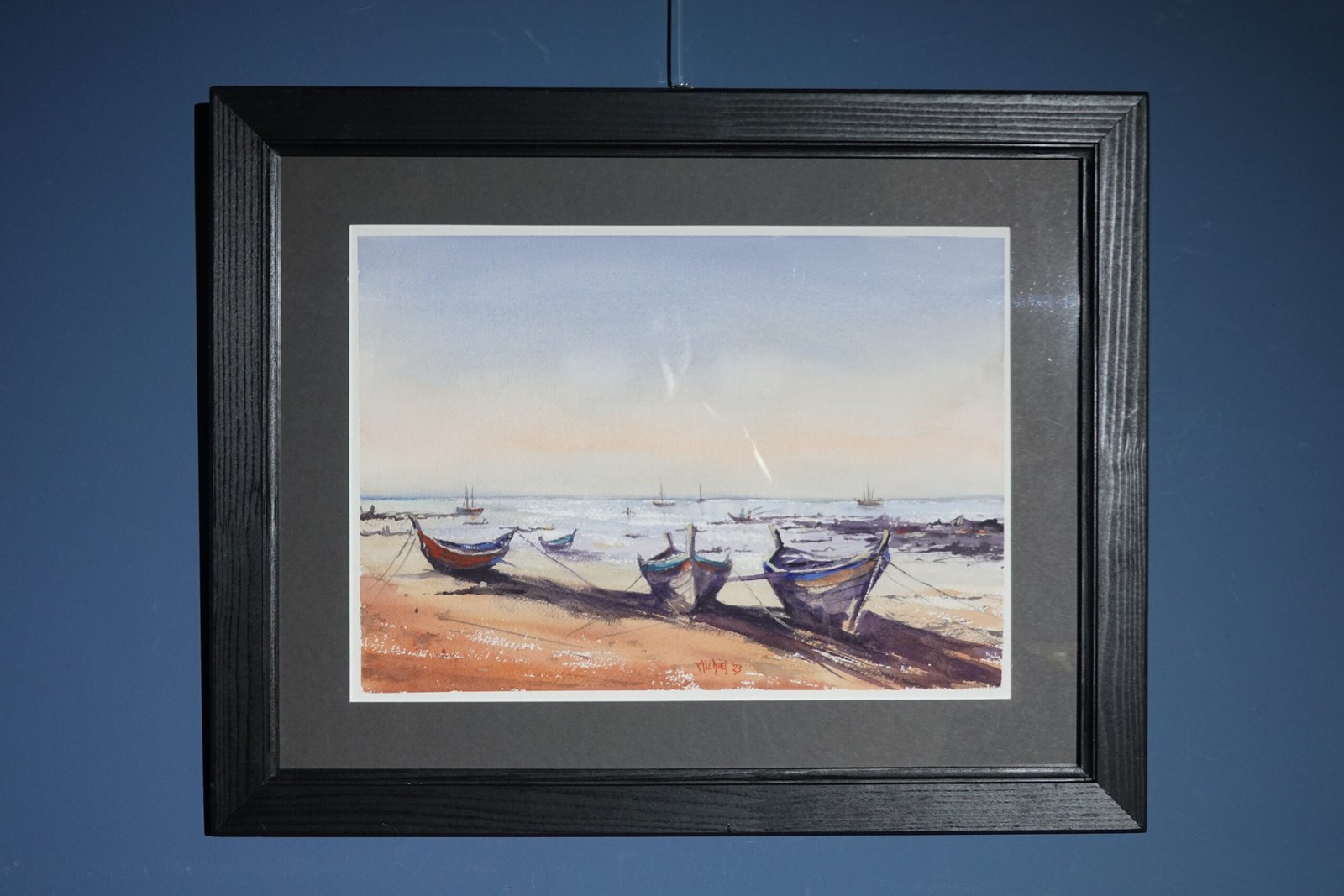 In Calella heeft de ochtend een zachte gloed die ik graag wilde vangen. De vissersboten liggen scheef in het zand, hun schaduwen lang en koel in contrast met de warme tinten van het strand. De zee schittert verderop in lichte blauwen en paarse nuances, alsof ze langzaam wakker wordt. Ik hou van die stilte vóór de bedrijvigheid, het moment waarin je alleen het zachte ruisen van de golven hoort en de belofte van een nieuwe dag voelt. Het is een eenvoudig, maar tijdloos tafereel.