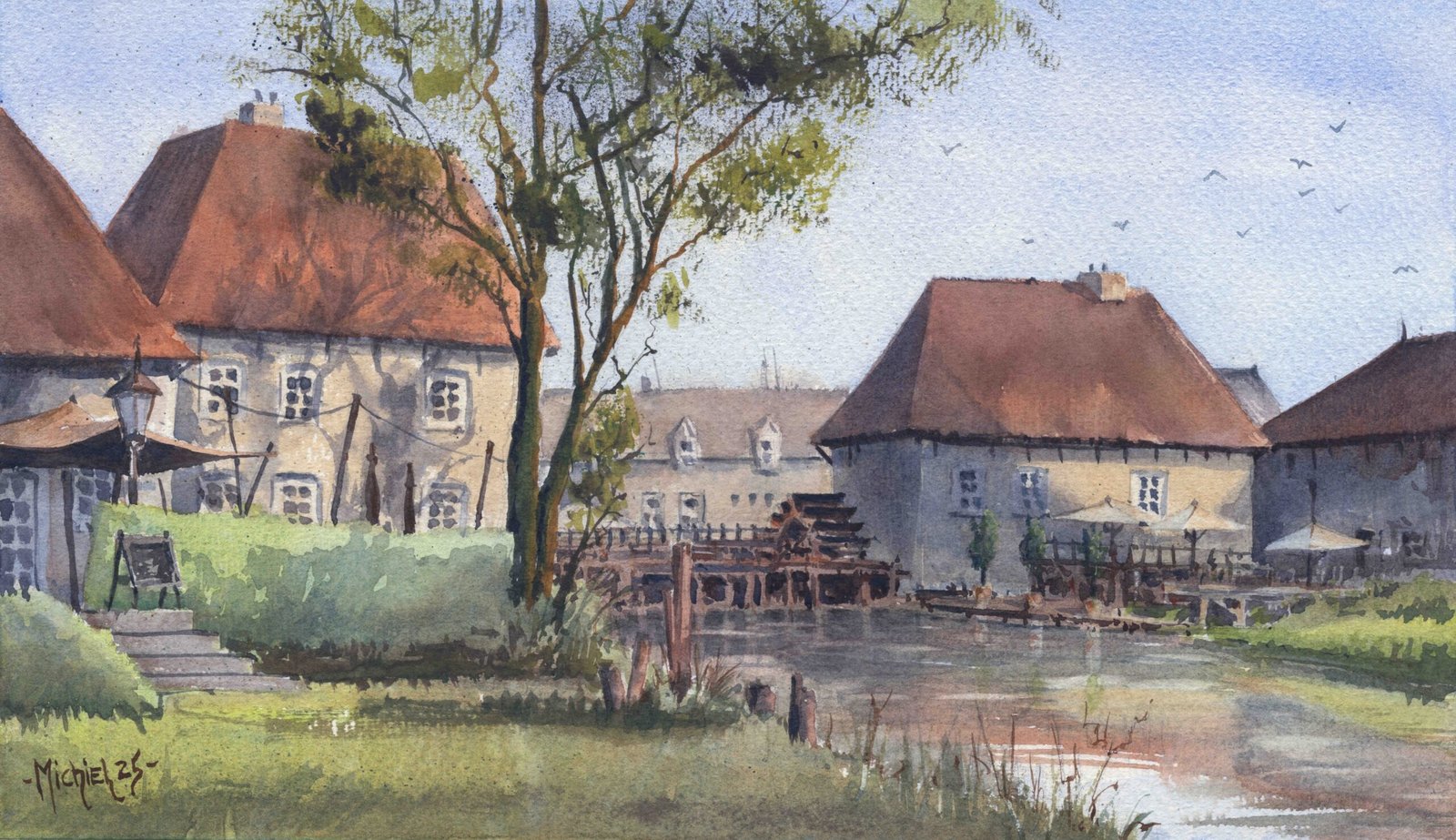 De Olliemölle in Borculo voelt alsof de tijd er een beetje langzamer gaat. Terwijl ik daar zat, gleed het zomerlicht zacht over de oude gebouwen en het water, en hoorde ik alleen het ruisen van de bomen en het kabbelen van de Berkel. De warme daken en de koele schaduwen vormden samen precies het contrast waar ik zo van hou. Ik wilde vooral de rust van deze plek vangen: de molens, het stille water en het gevoel dat hier generaties lang gewerkt en geleefd is. Een plek die meteen vertrouwd voelt.